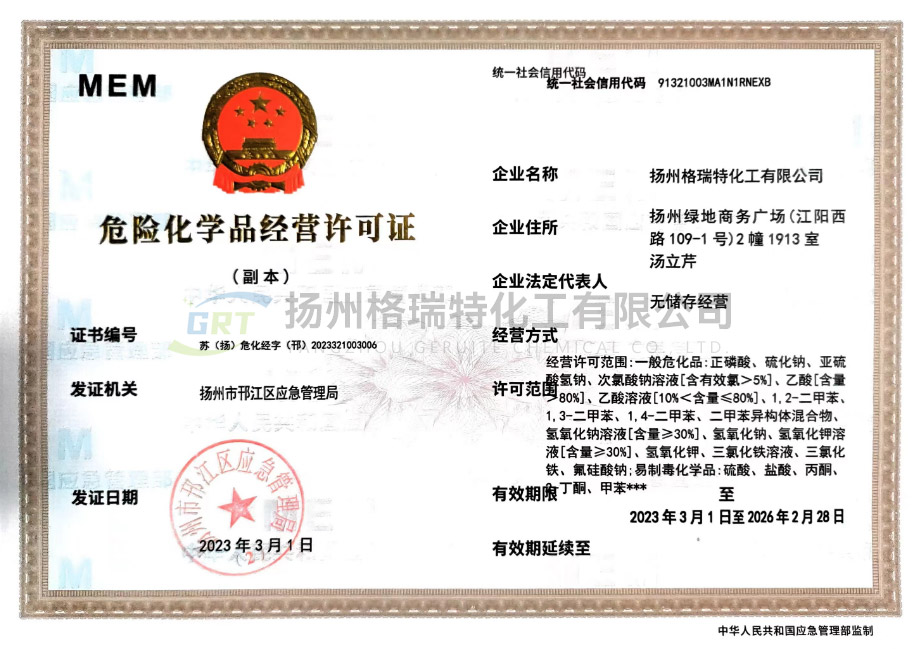 揚州格瑞特化工有限公司生產(chǎn)工廠坐落于江蘇省海安縣胡集工業(yè)園區(qū)和海安精細化工工業(yè)園??偣境闪⒂?999年,是集科、工、貿(mào)為一體的現(xiàn)代化生產(chǎn)型企業(yè)。專業(yè)致力于水處理劑、紡織印染助劑、化纖油劑等產(chǎn)品的科研、開發(fā)、生產(chǎn)和銷售??偣菊嫉孛娣e40000m,建有現(xiàn)代化標準廠房,擁有先進的生產(chǎn)設備。年產(chǎn)各類水處理劑系列產(chǎn)品12000噸,紡織印染助劑5000噸,產(chǎn)品12個系列40多個品種。總公司注重技術(shù)投入,設立產(chǎn)品研發(fā)中心和環(huán)保運營中心,聘請了多位專家為公司技術(shù)顧問,并和多個重點院校建立了長期技術(shù)合作開發(fā)關(guān)系,是南通大學、江南大學、南京工業(yè)大學產(chǎn)學研基地。